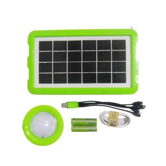 Luminária Solar Rádio Luz Emergência USB Portátil Gd-7720 Verde/Preto