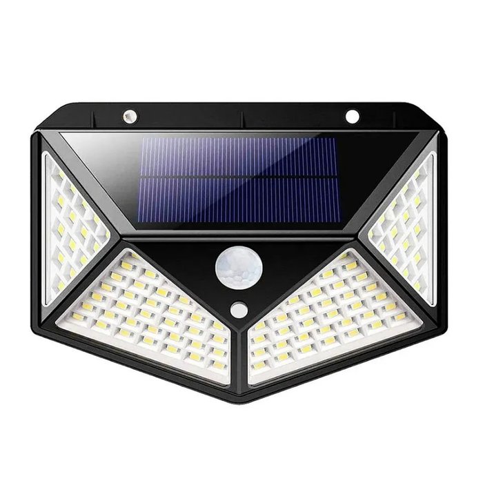 Luminária Solar Sensor de Movimento Branco Quente Presença Parede 100 LED 3 Funçoes Lâmpada Prova