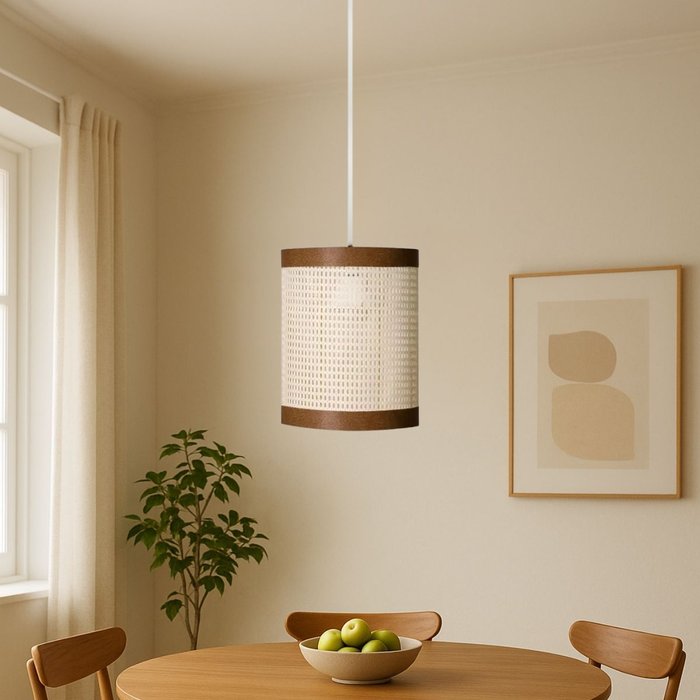 Eleve a decoração com o Pendente Eclipse: design contemporâneo, acabamento artesanal e a textura acolhedora da palha indiana sintética com bordas em corino sintético na cor amadeirada. Versátil e elegante, valoriza salas de estar e de jantar, quartos, halls de entrada, varandas cobertas e também ambientes comerciais como cafés e restaurantes.