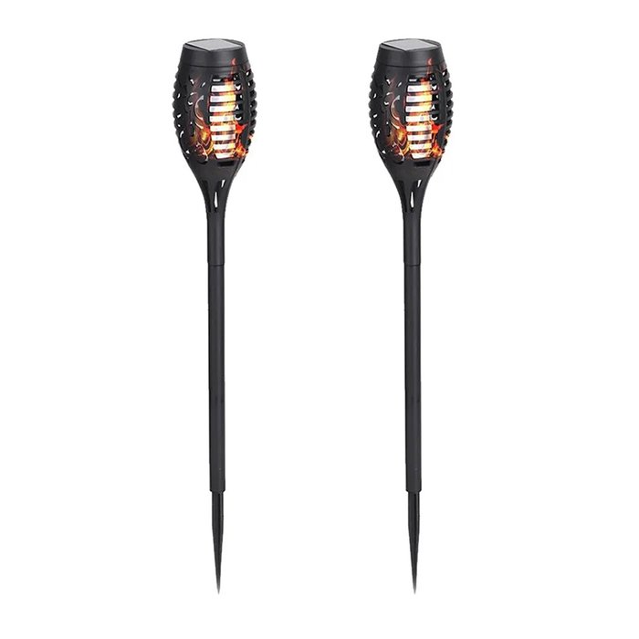 Luminaria Tocha Solar Kit 2 Unidades Chama Fogo Espeto LED Praia Lual Jardim Decoraçao Evento Preto