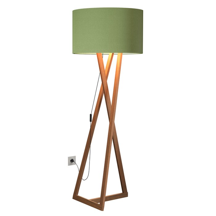 Luminária Tripé Moderna Sala Leitura com Cupula e Pés em Madeira Luxo Bella Cor Verde Verde