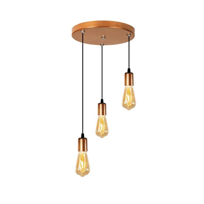 Trio Conjunto Pendente Soquete Cobre.