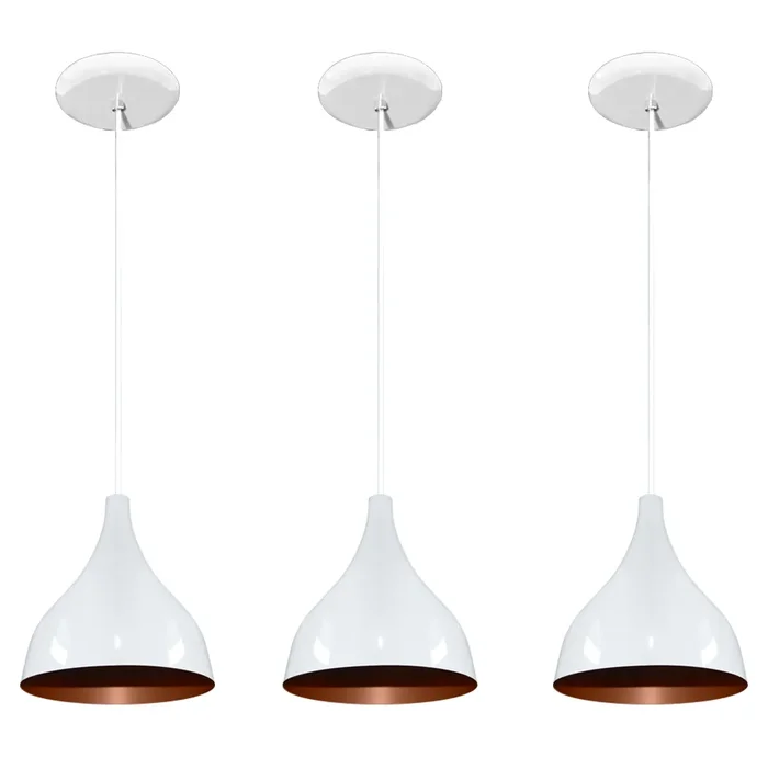 Luminárias pendentes balcão 3 un Branco com cobre