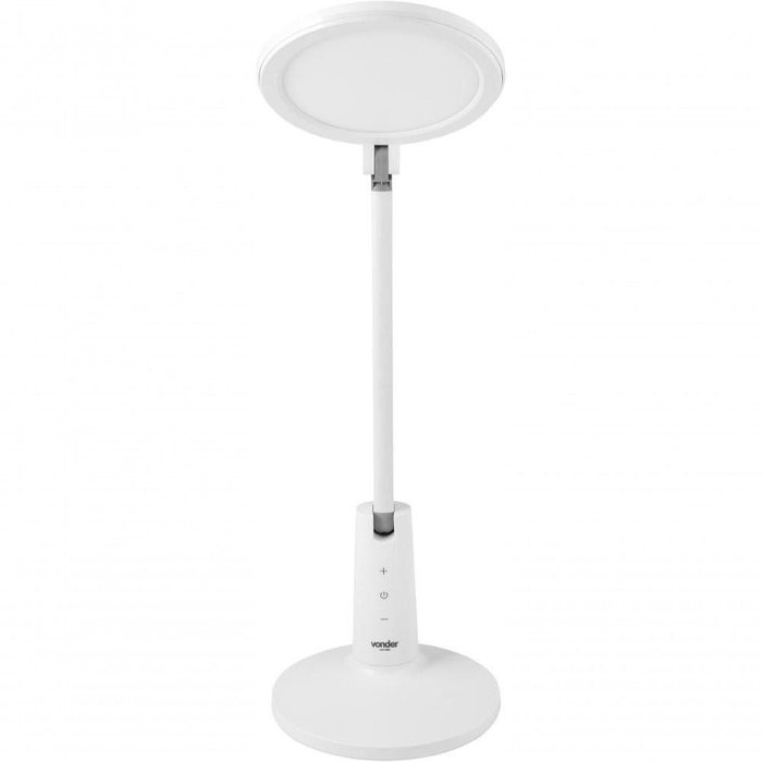 Marca: Vonder Código: 8074000888 Conteúdo da embalagem 1 Luminária. Acompanha: 1 cabo USB para carregamento. Destaques e diferenciais: Prática e portátil, possui estrutura em plástico ABS, garantindo maior resistência. Conta com bateria recarregável de Íons de Lítio e haste articulada, facilitando o direcionamento do foco de luz para o local desejado. Além disso, possui comando touch com 5 níveis de luminosidade e lâmpadas de LED que proporcionam economia de energia e maior durabilidade. Aplicações e dicas de uso: Indicada para iluminação em mesas, para leitura e estudo. Potência: 10 W Tipo de bateria: 3,7 V / 3600 mAh - Íons de lítio Tipo do LED: SMD Quantidade de LEDs : 54 Cor do LED (Kelvin): 4.000 K Fluxo luminoso (lúmen): 113 lm / 188 lm / 375 lm / 563 lm / 750 lm Índice de proteção (IP): IP20 Entrada de carregamento: 5 V - 2 Ah DC Dimensões (C x L x A): 180 mm x 180 mm x 440 mm Massa aproximada (peso) (kg): 1,0 kg Garantia - E (CDC): Garantia legal: 90 dias NA