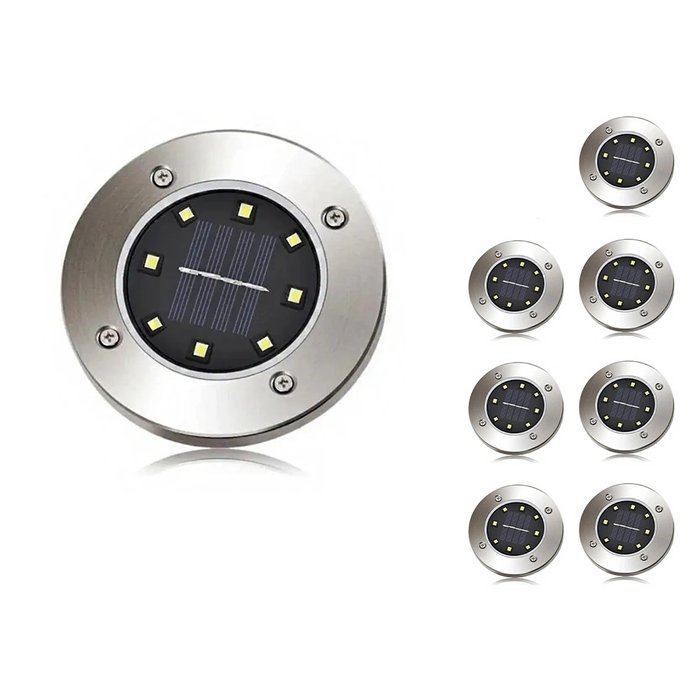 Luminárias Solar 8 LEDs Jardim Branco Quente 12 Unidades Escada Corredor Gramado