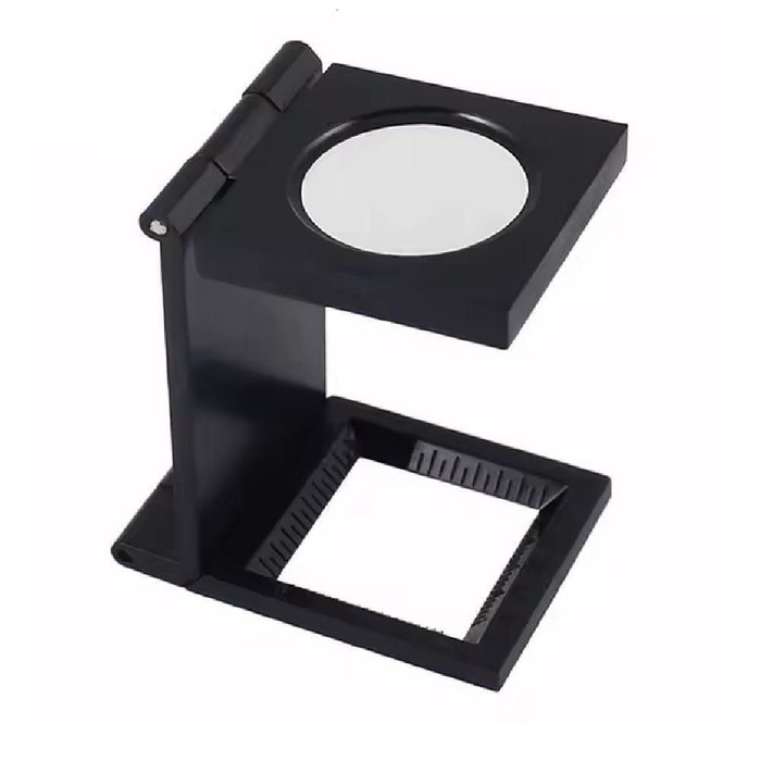 Lupa Conta Fios 10x Mini Mesa Bancada Suporte Dobravel Lente Optica 28mm com Escala Profissional
