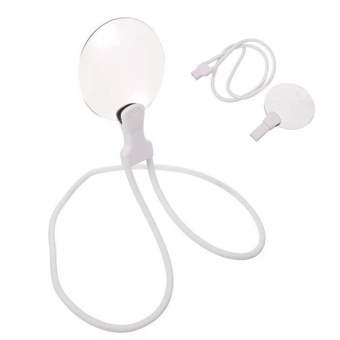 Lupa de Pescoço Apoio Mesa Aumento 5x Haste Flexivel Idoso Leitura Trabalho Vista Cansada Visualizaç Branco