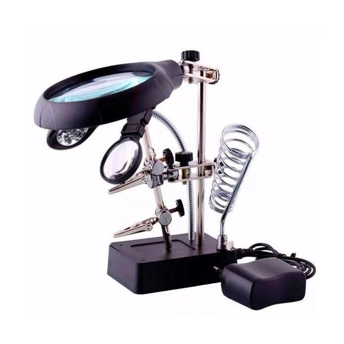 Lupa Leds Mesa Bancada Cabeceira Estante Garra Solda Lente