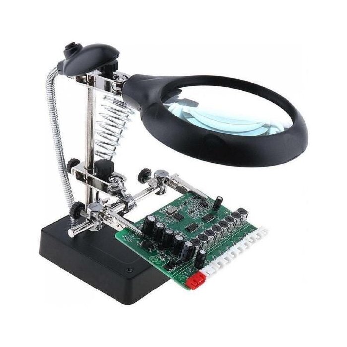 Lupa Mesa Bancada Luz Led Lente Aumento Garras Estação Solda