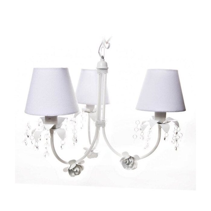 Lustre 3L Primavera Cristais 3 Flores P Branco Quarto Bebê Infantil Menina Menino P Branco