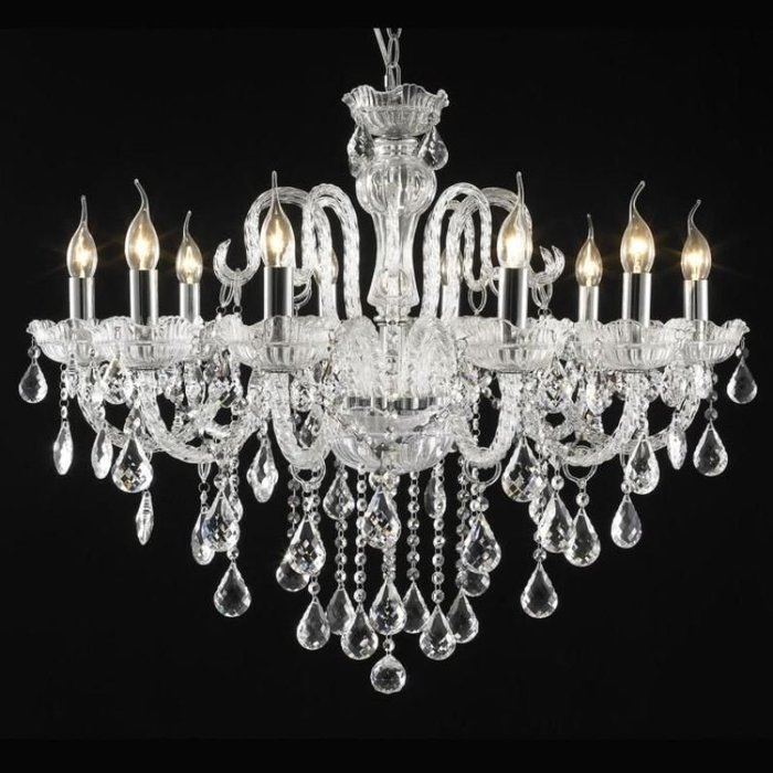 Lustre Candelabro com Cristal 10 Braços Transparente Ø83cm +Luz