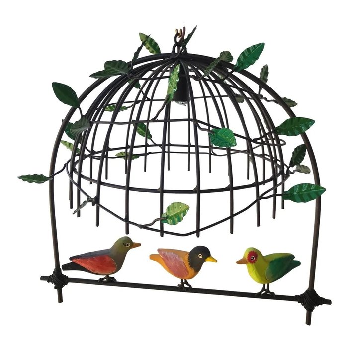 Peso: Lustre de 01 Bocal Aramado com Passarinhos pesa aproximadamente 1,5 Kg