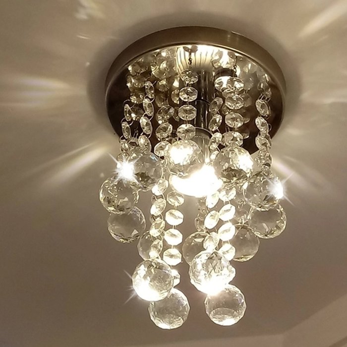 Especificações técnicas:Base de alumínio brilhanteDimensão Base: 13 cmAltura do lustre: 20 cmPêndulos de cristal k9 de 30 mm e castanhas de cristal k9 14 mm1 soquete externos para lâmpada GU10.(Lâmpada não inclusa)Tensão: 60 wBivoltTravessa reforçada para instalação no teto.Instalação elétrica completa anti-chamas.Boas compras :)