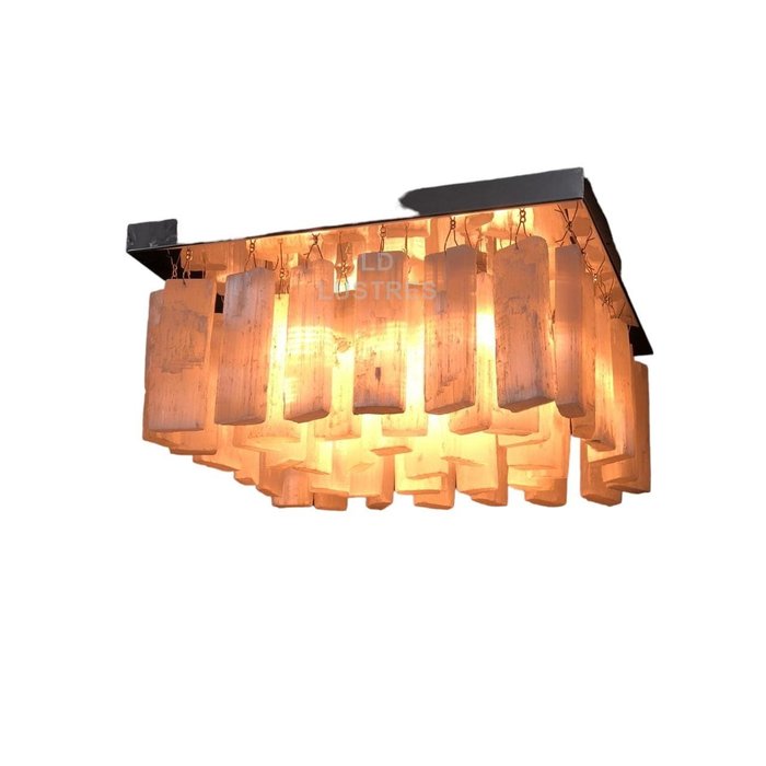 Lustre De Selenita Natural Para Sala Quarto Com Lâmpada Gu9