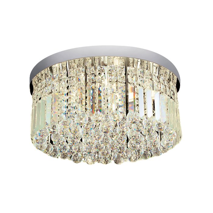 O Lustre de Cristal para Teto é uma peça de iluminação sofisticada e elegante. Com um diâmetro de 50cm, este lustre é suficientemente grande para criar um impacto visual, mas compacto o suficiente para se adequar a uma variedade de espaços.