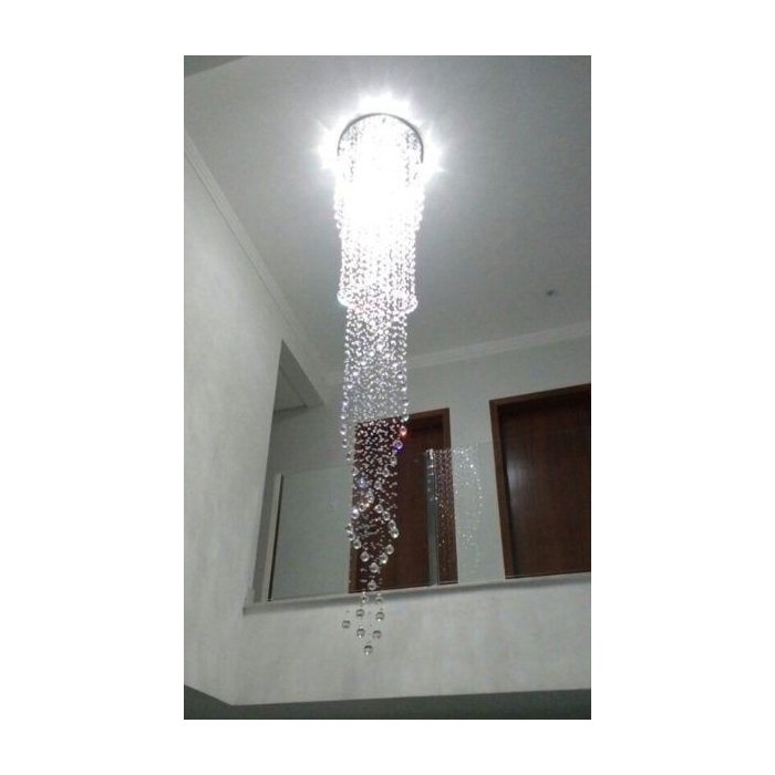 Lustre em Cristais Legítimos Base 60cm Dm 2,50m para Escada Espiral Duplo Pé Direito Alto Prata