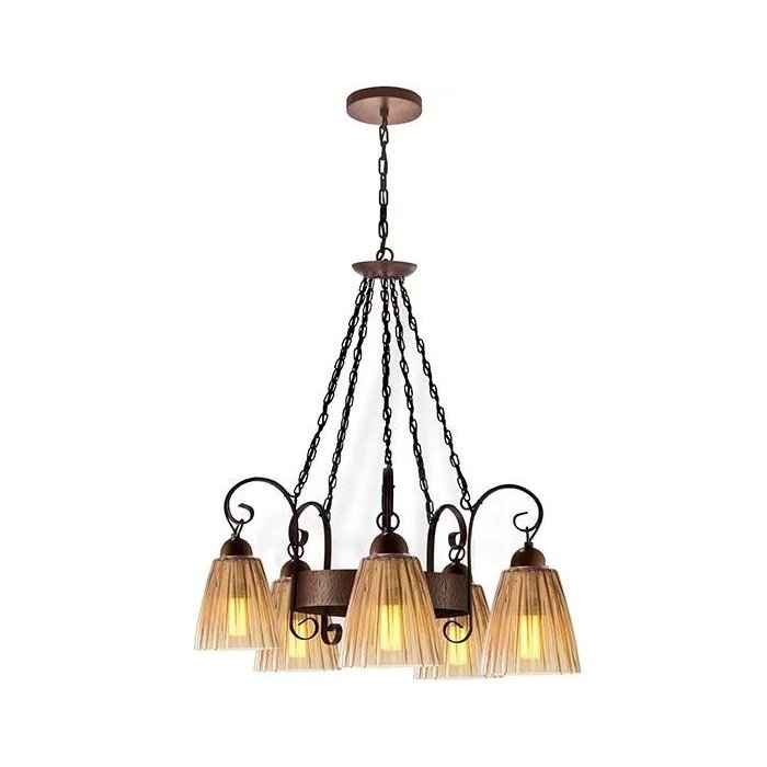 Cod: 2234/5/89 Lustre Florenca Metal Envelhecido, Vidro Ambar Cor: Envelhecido, Ambar Soquete: 5*E27 Bivolt (Lâmpada não inclusa)
