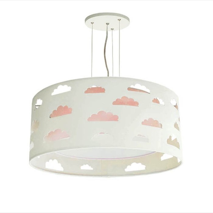 Lustre Infantil Luminária Pendente Nuvens Recortes 40x16 Rosa/Branco