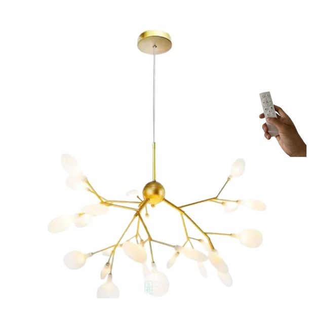 Lustre LED Folhas Moderno Dourado com Acessórios