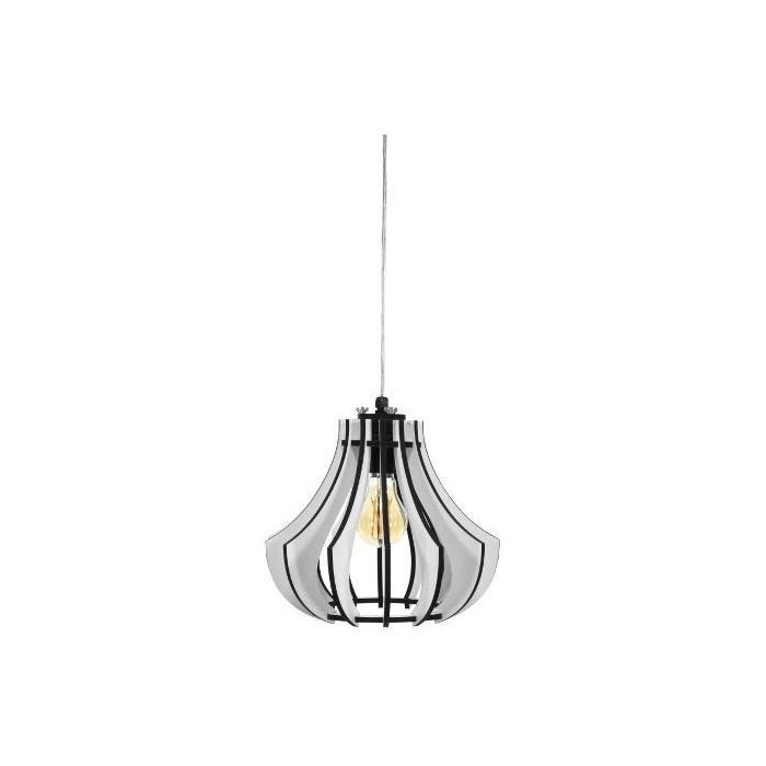 Lustre Luminária Pendente Madeira 23x26cm Rustica Sala Lpc20 - Branco com Borda Preta - 110V/220V (B Branco com borda preta