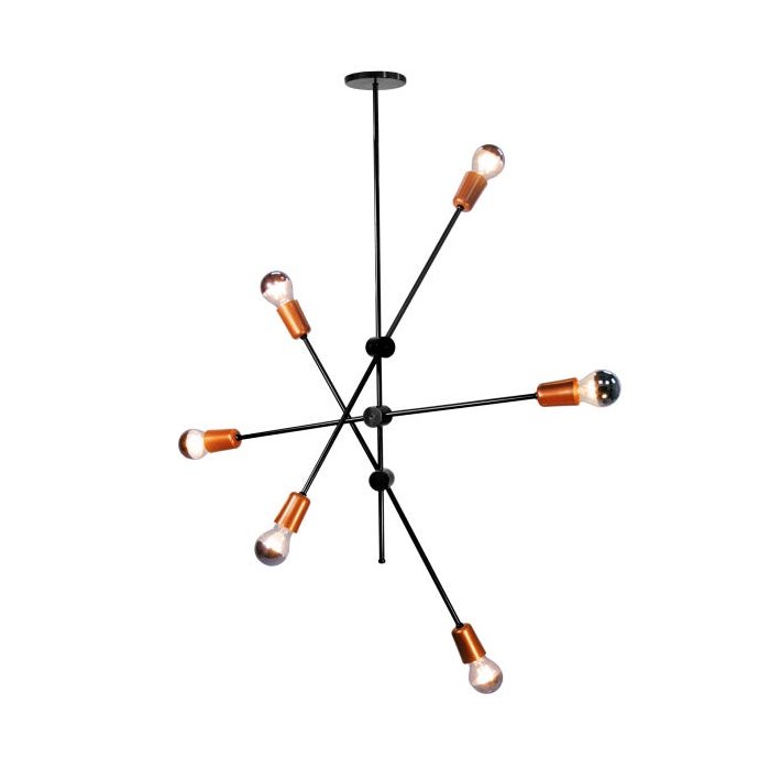 Lustre Luminária Sputnik Spencer Industrial-Preto com Cobre