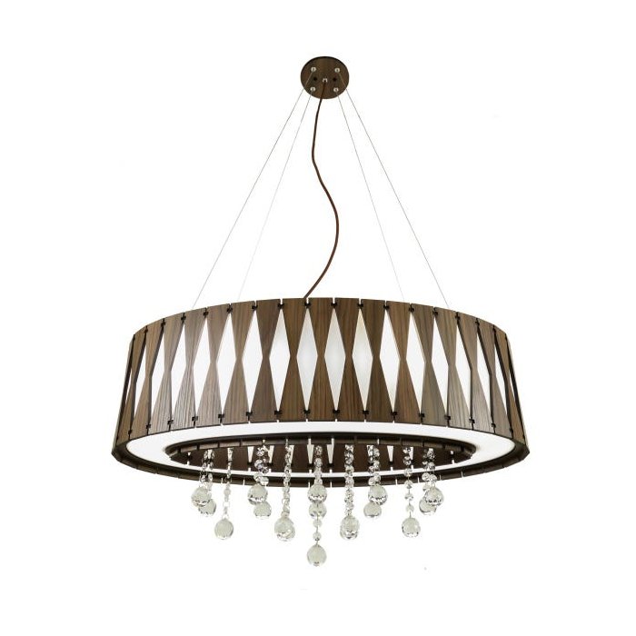 Lustre Oasis Pendente Madeira Oval 70Cm Imbuia Cristal
