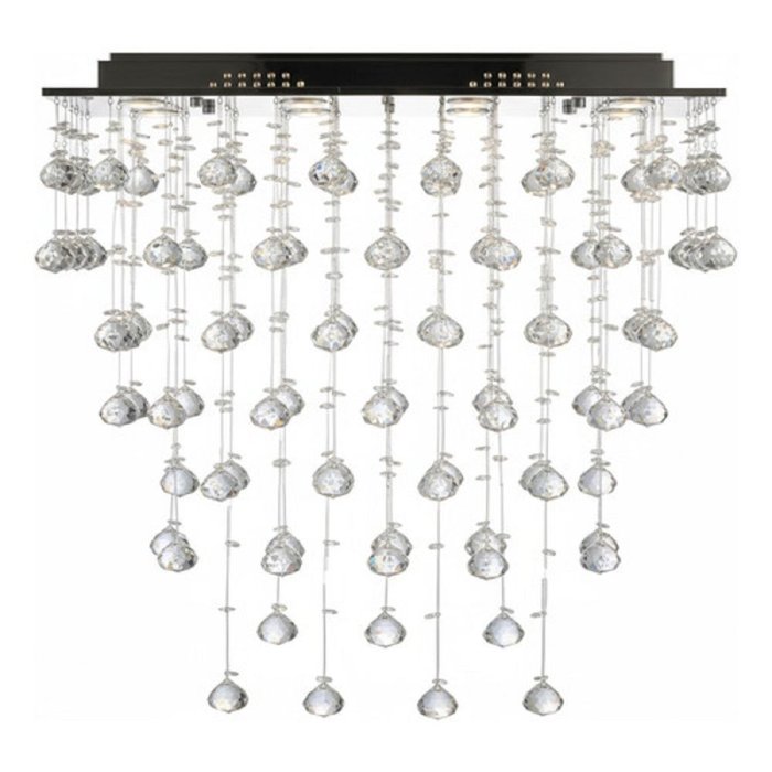 O lustre é composto por uma impressionante cascata de cristais legítimos: são 80 pêndulos com esferas de 30 mm e aproximadamente 500 castanhas de 14 mm. A combinação dessas peças cria um brilho intenso e sofisticado, tornando-o um ponto focal em qualquer ambiente.