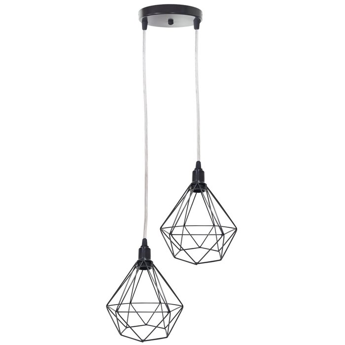 Lustre Pendente Aramado Duplo Diamante Cabo Cristal Regulável Preto Luminária Agp Ilumini Cabo Crist