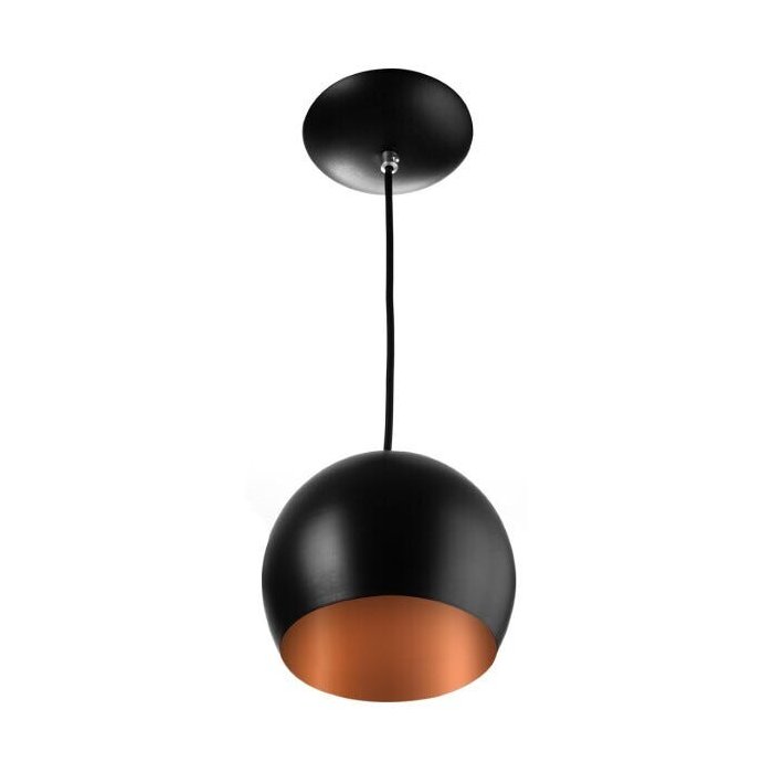 Lustre Pendente Bola Média de Alumínio 23cm Preto/Cobre