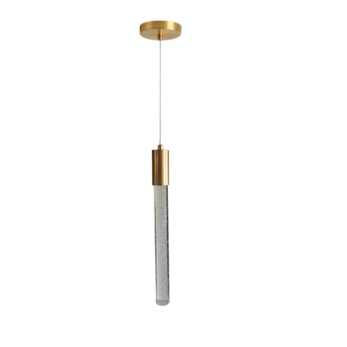 Lustre Pendente Bolha Cristal Tubo Dourada Led 5w 36cm 3000k Bivolt