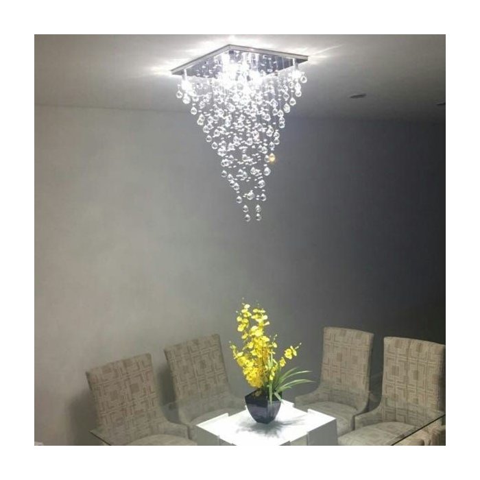 Especificações técnicasCor da Base: prateada, cristais transparentesModelo : chuva de cristaisGarantia : 12 meses Material : Aço inox espelhado / cristal LegitimosAcabamento: Aço inox polido ( espelhado) Quantidade de pêndulos ( 120 ) Esferas ( 30MM ). 120unidadesCastanhas 14MM em cristais, esferas fixadas com cabos de aço.Dimensões : Base ( 50x50 ) de sobrepor com a parte lateral com 2cm de inox.Altura: ( 80cm ) Instalação : laje ou gesso drywall Forro PVC ou madeiratrava central de fácil fixação.Soquetes em porcelana ( 8 ) com capinhas cromadas.Lampadas LED (Lâmpada inclusas)