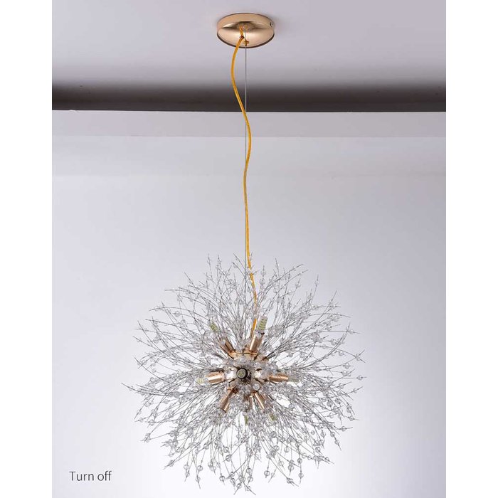 Lustre Pendente Dente de Leão Dourado Redondo Cristais 8E14 40cm