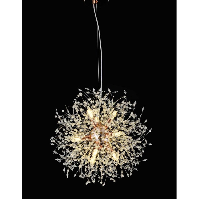 Lustre Pendente Dente de Leão Redondo Rose Gold Cristais 12G9 60cm