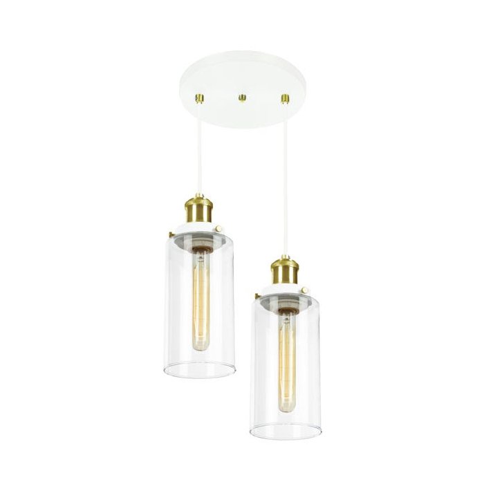 Lustre Pendente Duplo Château Cilindrico Vidro Branco Gold