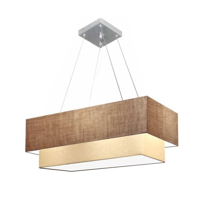 Lustre Pendente Duplo Retangular Vivare Md-4138 Cúpula em Tecido 70x30cm x 60x25cm - Palha / Bege