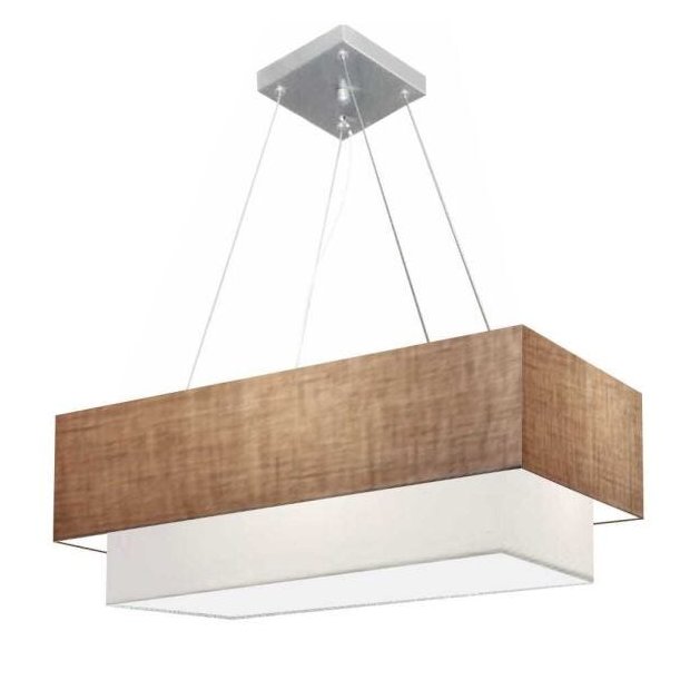 Lustre Pendente Duplo Retangular Vivare Md-4138 Cúpula em Tecido 70x30cm x 60x25cm