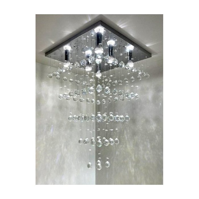 Lustre Pendente em Cristais Grande para Mesa de Jantar Prata