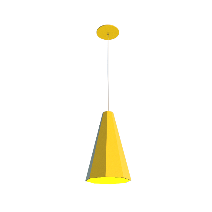 Lustre Pendente Facetado Cônico 35x21cm 1xE27 Em Madeira - Amarelo Amarelo
