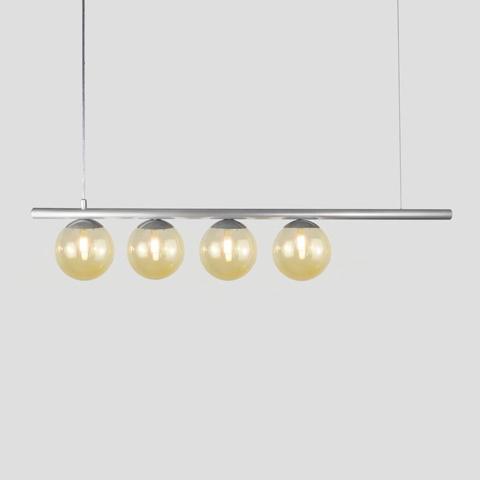 Lustre Pendente Figo Prata- 4 Globos Esfera de Vidro Âmbar
