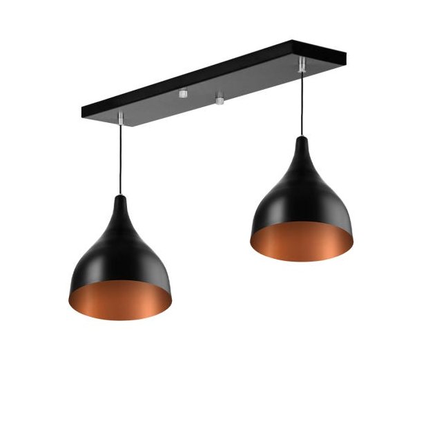 Ver imagem 1 de Lustre Pendente Gota Duplo Base Retangular Preto/Cobre