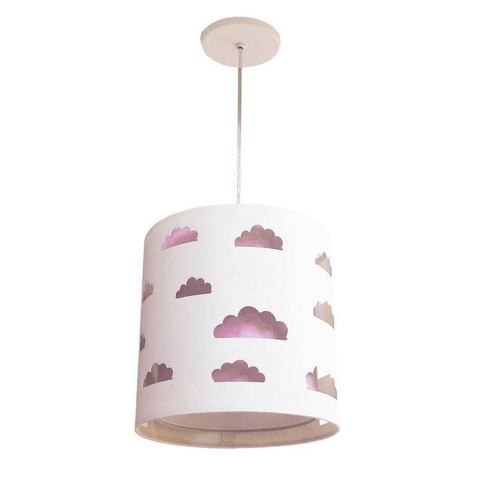 O Lustre Pendente Infantil Nuvem é perfeito para incrementar a decoração do quarto do seu pequeno. Sua estrutura em plástico flexível traz mais modernidade e diversão para a sua decoração. O Lustre conta com uma cúpula externa com recortes de nuvens na cor branca e cúpula interna com acabamento em tecido de algodão na cor rosa.