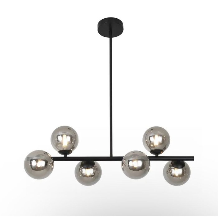 Lustre Pendente Jabuticaba 6 Globos Vidro Fumê Preto G9 Bivolt