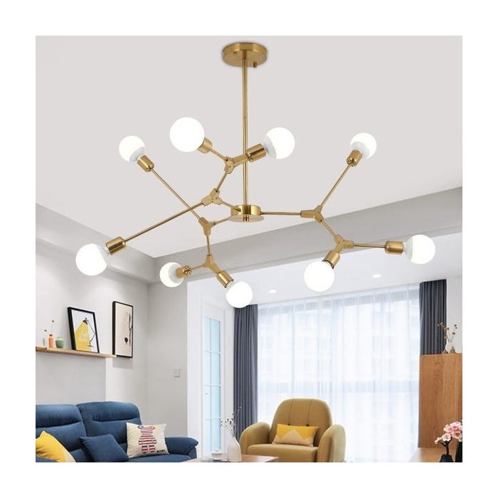 Lustre Pendente Luminária Sputnik Galvanizado Dourado Moléculas 9 Cabeças Design Moderno