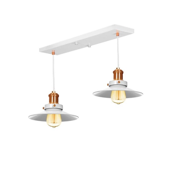 Lustre Pendente Nordic Duplo Base Retangular Branco/Cobre