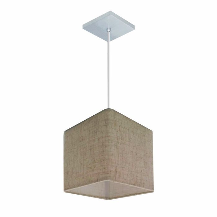 Lustre Pendente Quadrado Vivare Md-4223 Cúpula em Tecido 15/13x13cm - Bivolt - Rustico Bege - Bivolt