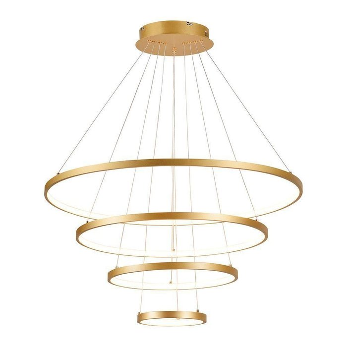 Especificações Gerais do Produto:Voltagem: BivoltDimensões AxLxP (mm): De cima para baixo: Círculo 1: 800mm; Círculo 2: 600mm; Círculo 3: 400mm; Círculo 4: 200mmCor: DouradoMaterial: Alumínio e SiliconeGarantia: 1 ano junto ao fabricanteReferência: DCD03011Cor Principal: DouradoFluxo Luminoso: 9040 lúmensComprimento dos Cabos: Cabo ajustável, máximo 400cmPotência: 125WLocal de Uso: InternoModelo/Tecnologia: LED EmbutidoTemperatura da Cor: 3000K - Branco Quente