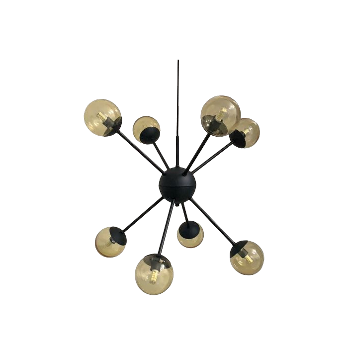 Lustre Pendente Sputnik Átomo Preto 8 Hastes com Globos Vidro Âmbar G9 3000k Bivolt