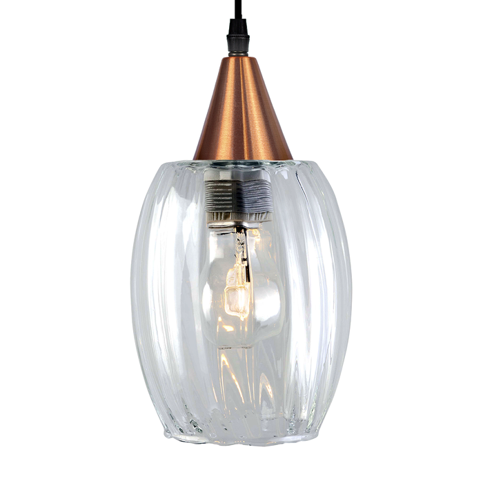 Lustre Pendente Taschibra Badih PP Canelado E27 Transparente Bivolt Cobre Cobre