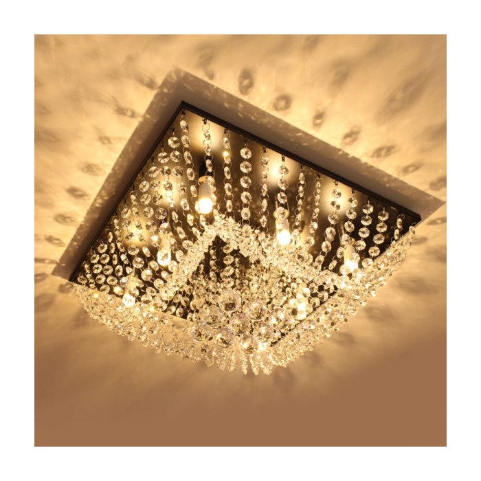 Lustre Plafon Kyoto Black Cristal Original Quadrado 40x40x15cm com Base Preta para 8 Lâmpadas G9