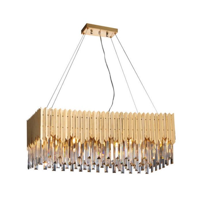 Lustre Retangular Cristal Legítimo Baluarte Dourado